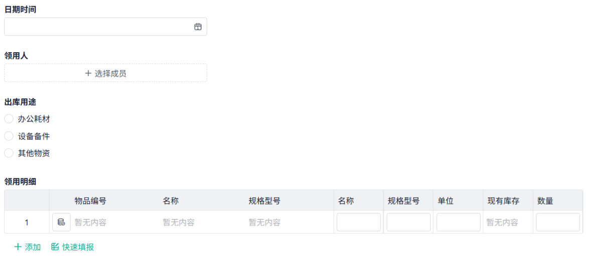 (提醒:前端设计层面要统一颜色),业务上侧重耗材领用流程。