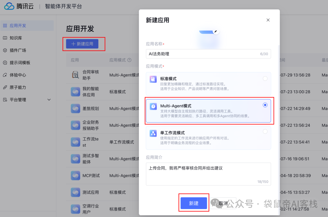 新建智能体,选择Muti-Agent模式(这个类型才能添加工具)