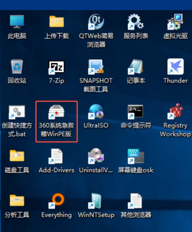 中没中毒?在机器联网的情况下,双击WinPE桌面的创建快捷方式会看到360系统急救箱