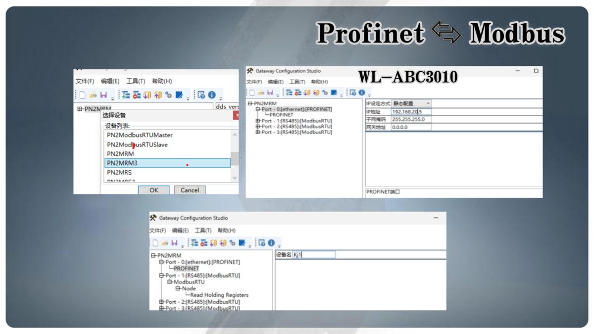 打开Gateway Configuration Studio软件新建项目选择PN2MRM3;设置修改PN端的IP地址和设备名称,需和博图配置保持一致。