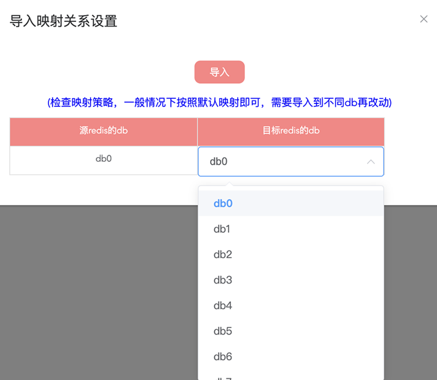 点击下一步,会要求我们选择已经导出的zip文件。然选择完zip文件后,会弹出要求我们选择目标redis要导入的db, 如下图: