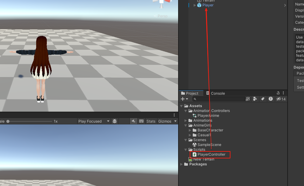 1.在 "Assets" 文件夹中新建一个名为 "Scripts" 的文件夹(你可以根据自己的喜好来命名),然后在该文件夹里创建一个新的 C# 脚本文件。接着将它拖拉到角色上。