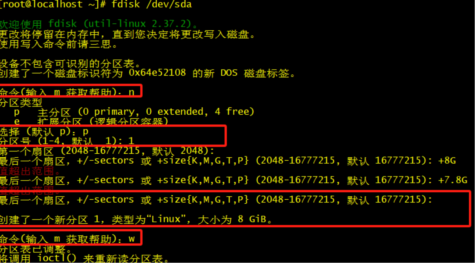 fdisk /dev/sda