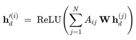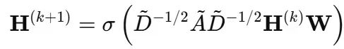 其中A=A+I添加自环连接,D为度矩阵,W为共享权重矩阵。