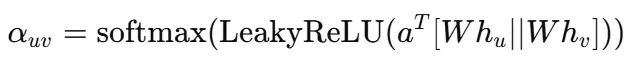 GATs通过学习注意力权重α_{uv}来解决这一问题,该权重衡量邻居节点v对节点u的重要程度。这些权重从节点特征计算得出,而非从图结构推导,使得模型能够学习识别重要邻居,而不是将所有边视为等价。