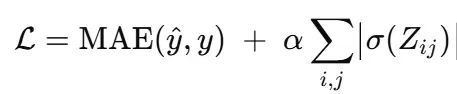 其中Z ∈ R^{N×N}为邻接logits矩阵,a{ij} = σ(Z{ij})为学习得到的边权重。L₁惩罚项将大多数a_{ij}推向零,产生稀疏且可解释的图结构。