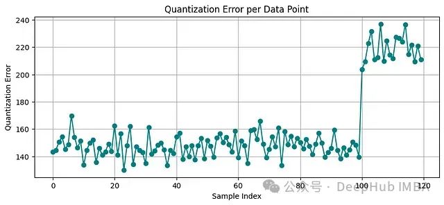 专业类比:量化误差类似于模式识别中的"陌生度量",衡量新样本与已知分布的匹配程度。当新样本与已学习的分布显著偏离时,高QE值即反映了这种统计异常性。