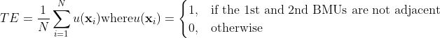SOM的核心特性是将相似数据点映射到网格中的邻近位置。当新输入数据的特性如此特殊,以致其两个最接近的BMU在网格上不相邻时,表明该数据点破坏了映射的拓扑结构——这种现象被定义为拓扑误差(TE)。