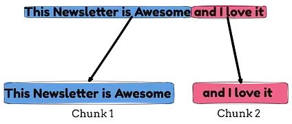 文本分块是RAG系统中的关键预处理环节,文本块定义为从大型文档或数据集中按照特定规则和策略分割而成的文本片段,这些片段将被嵌入并索引到RAG知识库中以支持检索操作。例如,简单的文档分割可以产生两个独立的文本块,如下图所示。