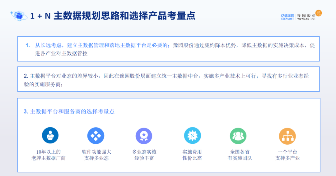正例:豫园股份的做法更聪明 —— 先花6个月做主数据规划:统一主数据工具、落地主数据中台,再让旗下产业集团入驻。结果,产业集团免去了主数据软件采购、运维成本,股份公司也提高了与产业的协同能力。