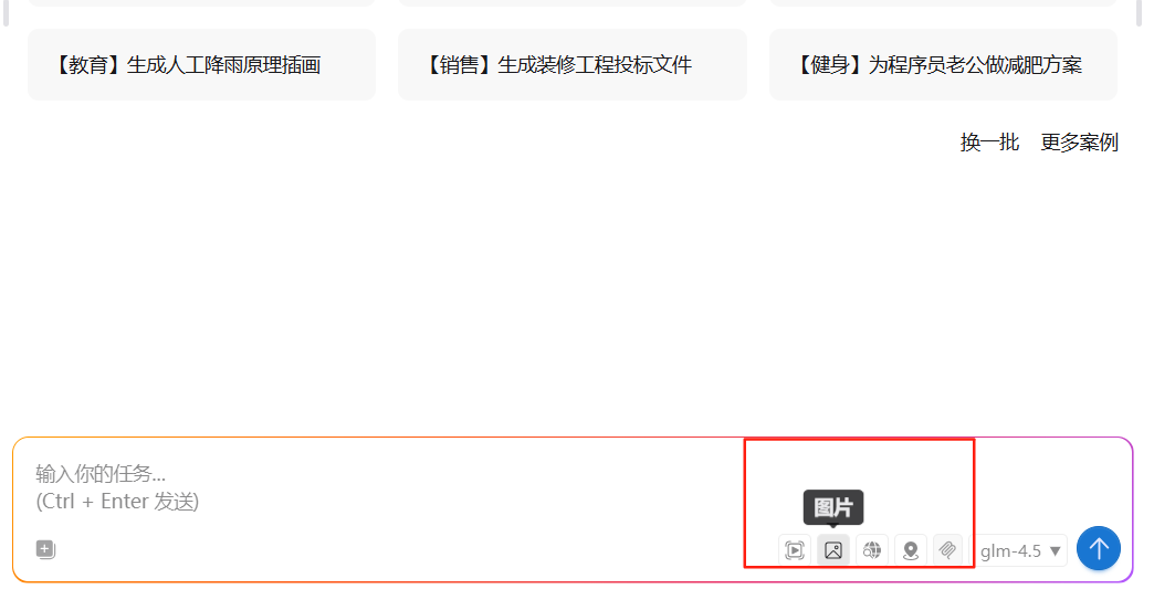 打开AiPy,在【智能体集市】安装对应功能后,一定要在对话框启动图片功能。
