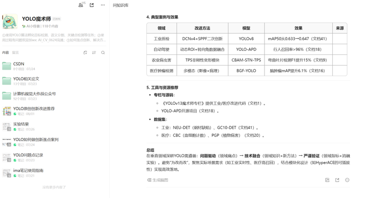 腾讯 IMA(Intelligent Model Assistant) 是腾讯推出的AI智能工作平台,依托混元大模型 + DeepSeek-R1 双引擎,支持联网搜索、多模态解析与结构化知识管理。 它并非仅为通用文档而生——通过IMA,你可搭建专属的“YOLO算法知识库”,打通技术研究、工程优化到团队协作的全链路效率。