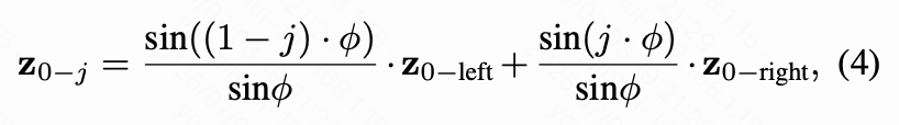 现有的图像变形方法通常为每个输入图像训练低秩适配(LoRA)模块,以增强语义理解并实现平滑过渡。然而,这种方法效率低下、耗时较长,并且在处理语义或布局差异较大的图像时效果不佳。本文提出了一种基于预训练 Stable Diffusion 模型的无需调参的图像变形方法。通过利用 DDIM(如公式 2)在图像反演与插值方面的能力,可以考虑将输入图像()转换为潜在特征(),并应用球面插值,这似乎是一个简单直接的解决方案: