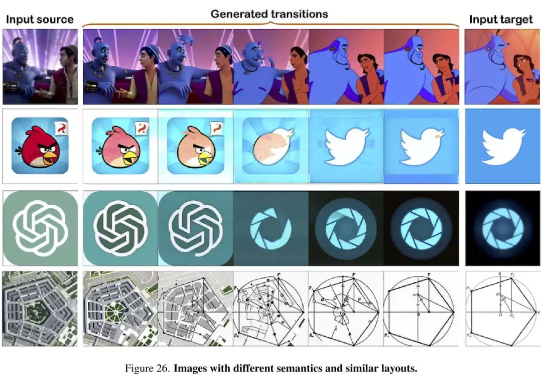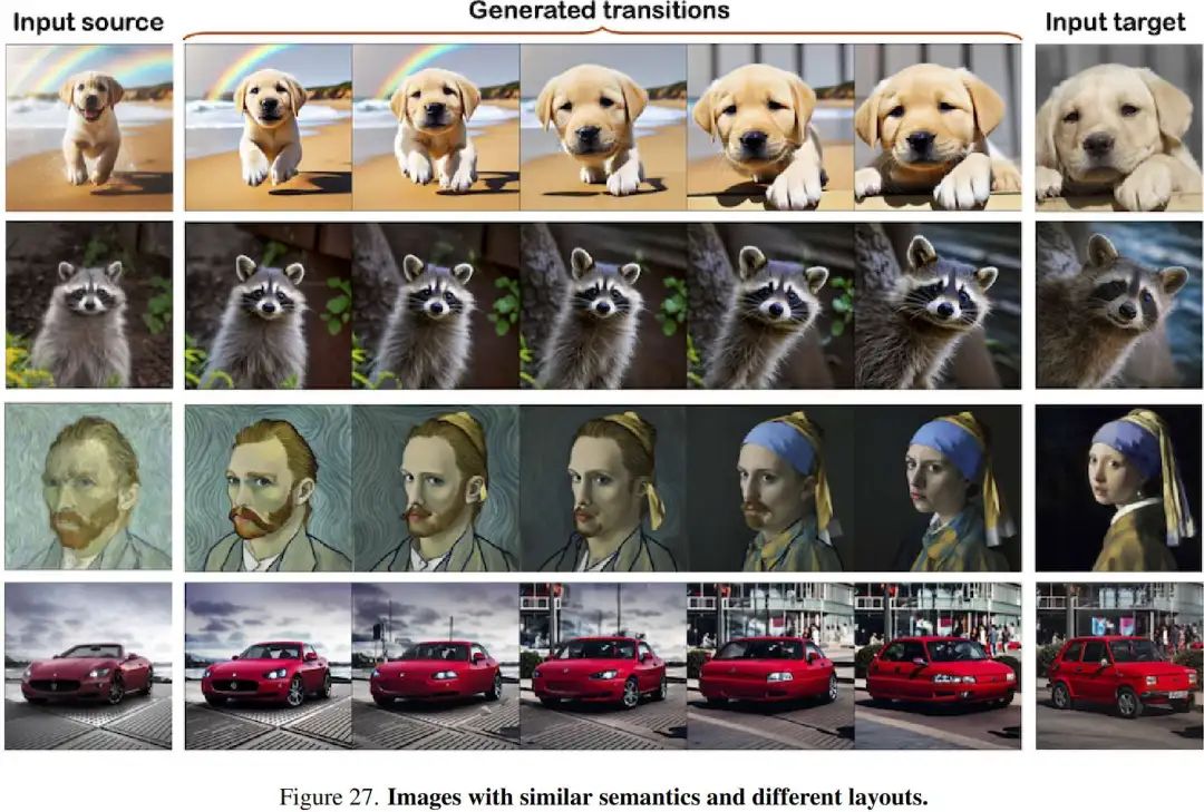 评估数据集。 DiffMorpher 引入了 MorphBench,其中包含 24 对动画和 66 对图像,主要是具有相似语义或布局的图像。为补充该数据集并减轻潜在偏差,本文引入了 Morph4Data,这是一组新策划的评估数据集,包含四个类别: