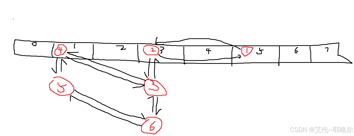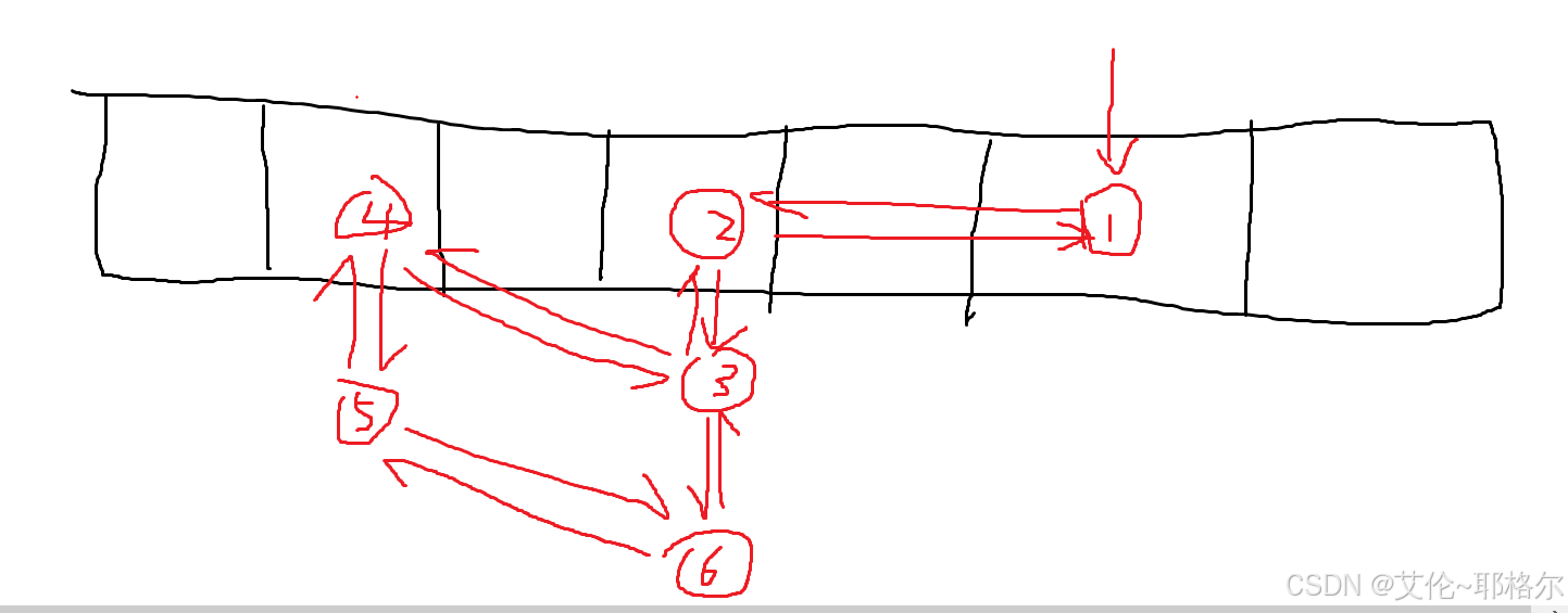 场景:元素1存到了索引5,元素2、3存到了索引3,元素4、5存到了索引1,此时双链表为1-2-3-4-5,但是元素6经过计算也存到了索引3,那么按说应该是元素5和元素6进行连接,但是又因为元素6也在索引3,索引3已经挂了元素2、3,那么此时索引3下是2 - 3 - 6,但是可以明显的看到一个环:3 - 4 - 5 - 6。