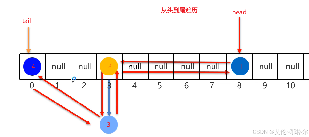 -> 经过最后4号元素存储完之后,最终为1 <-> 2 <-> 3 <-> 4