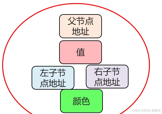 节点组成:(相较于二叉树多了一个记录颜色的)