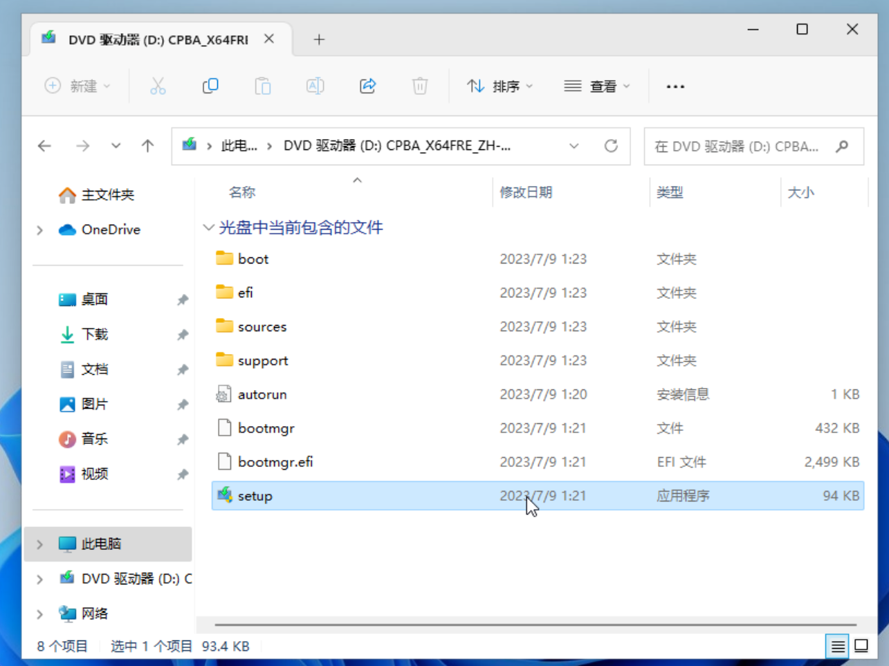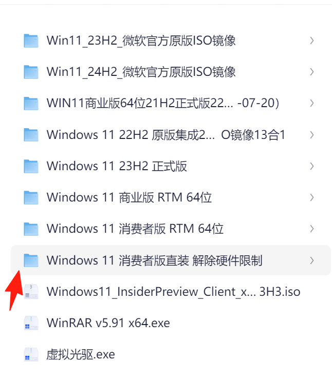 1、使用解压工具把Win11原版镜像文件解压到C盘之外的分区,比如D盘。注意,就是把它放在非系统盘,因为一搬C盘是系统盘,所以建议放在其它盘。