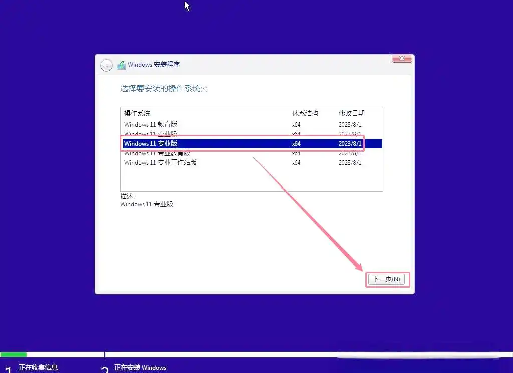 5.从下拉菜单中选择要安装的版本(这是里选择的是专业版)