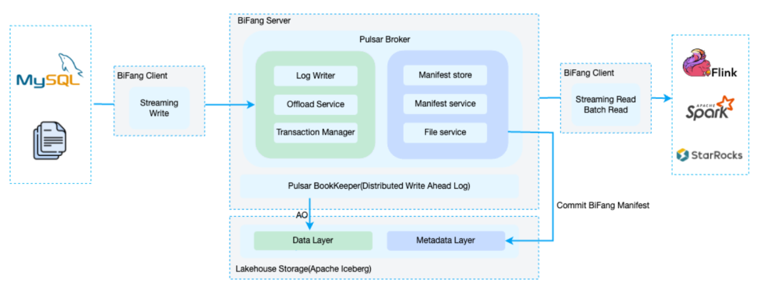 BiFang 对 Pulsar Broker 进行了深度改造增强,使其具备“实时存储 + 元数据管理”双重能力。