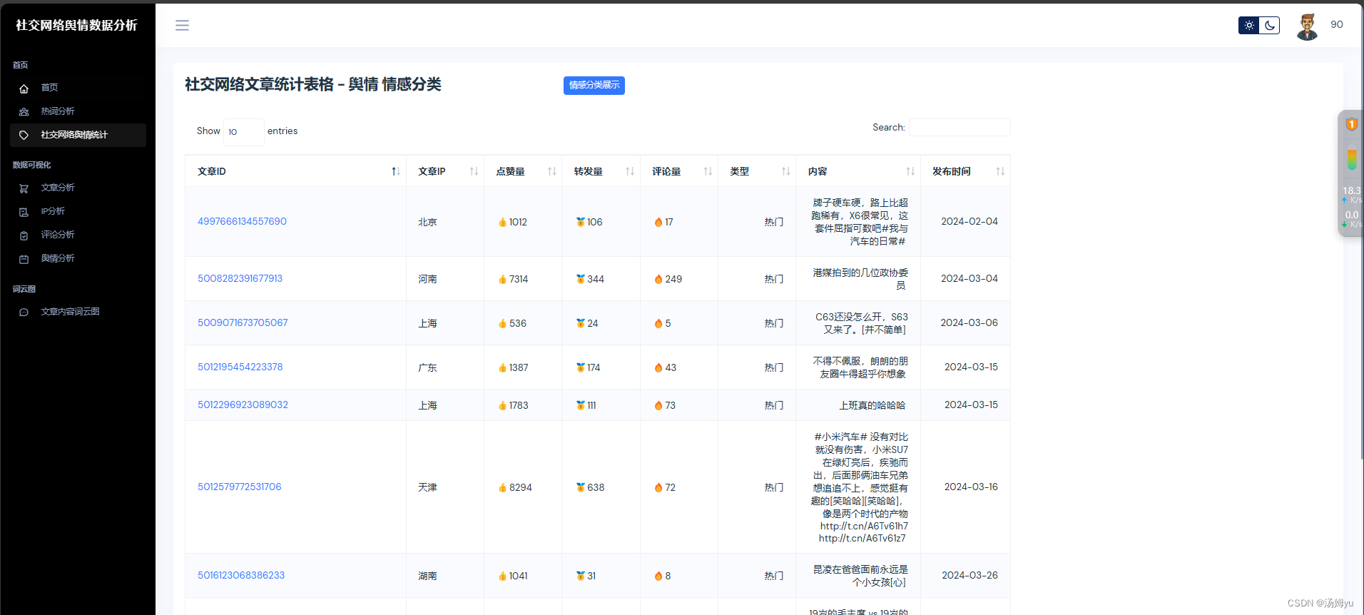 社交网络舆情分析与监测平台项目旨在结合社交网络分析和舆情分析与监测系统的技术,为用户提供更精准、个性化的信息服务。该项目的背景源于对用户需求个性化、社交关系影响力的认识,以及对信息传播、产品推广等方面的需求。随着互联网的快速发展,人们在社交网络平台上产生了大量的信息[1],用户面临着信息过载和推荐困境。