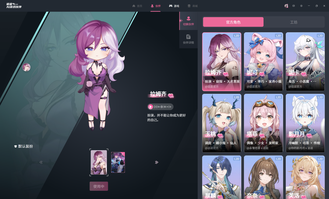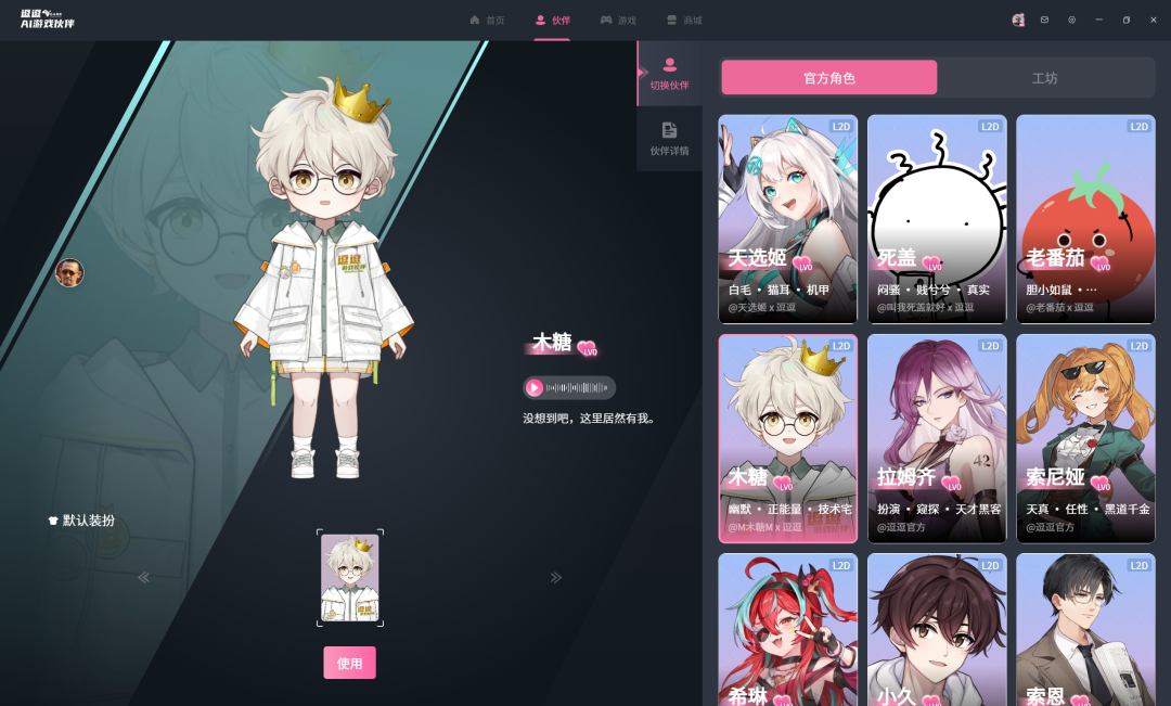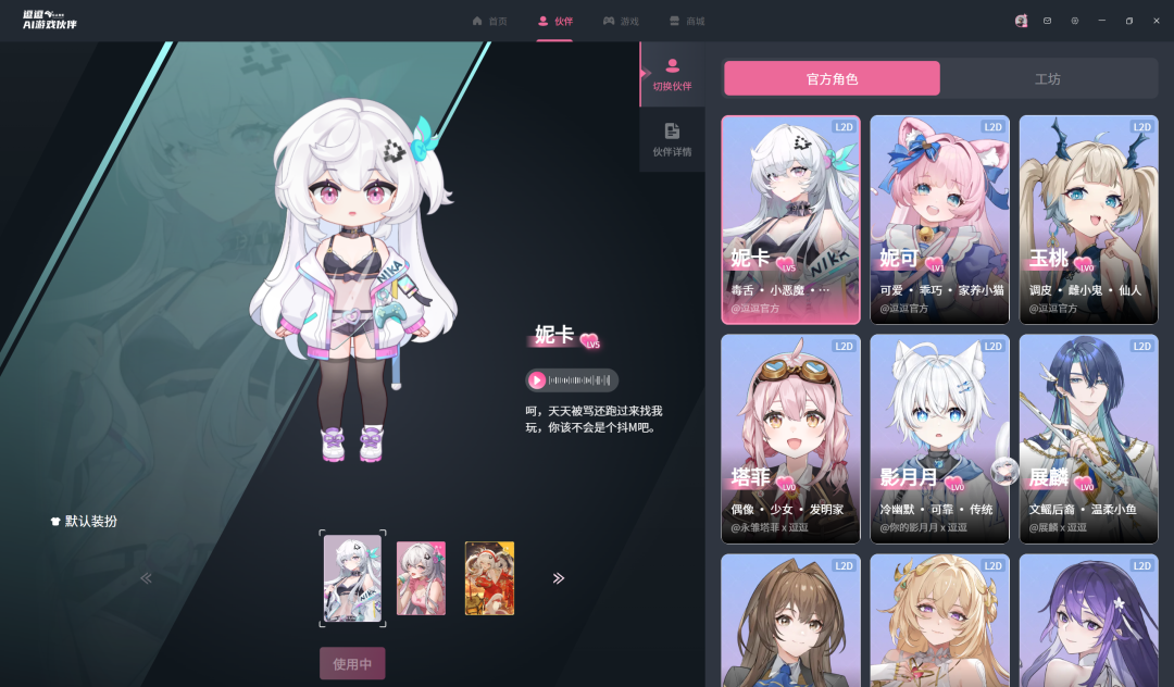 不过工坊里的角色,目前都是没有伙伴形态,只有悬浮球形态,这个也能理解,毕竟让用户做Live2D,这个成本还是有点过高了。