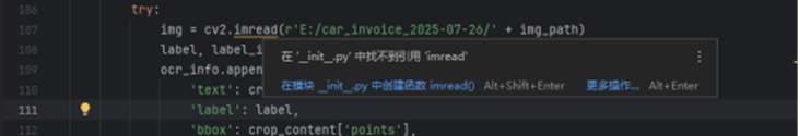 解决方法:在虚拟环境找到cv2,把cv2.pyb文件复制到site-package路径下即可。之后返回代码就可以看见cv2能够解析imread函数了。