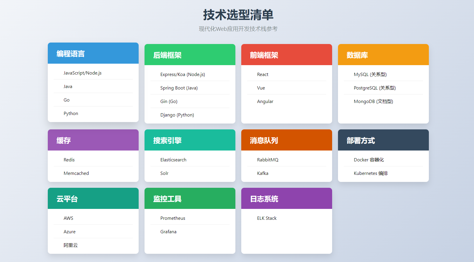技术选型清单如下: