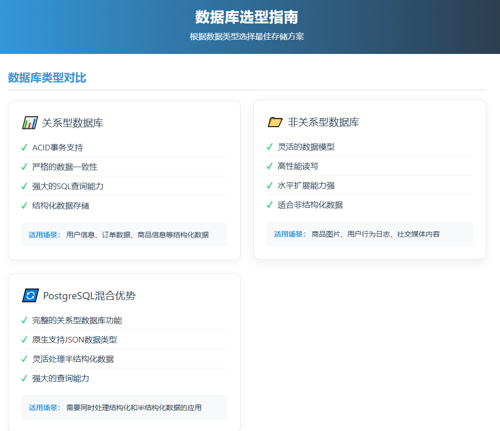 实际项目中常采用多数据库策略,根据不同数据类型选用最适合的存储方案。