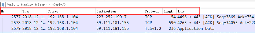 当我们想要查找所有进出某个主机的数据包时,我们会使用下面的过滤器。