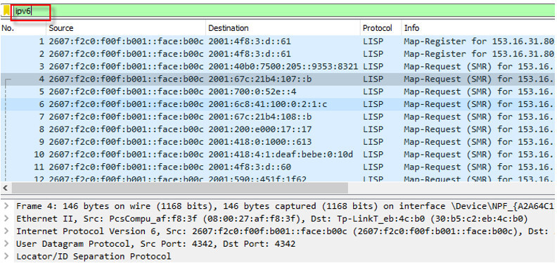 IPv6 是“Internet 协议版本 6”的缩写。IPv6 是 IETF 设计的“下一代”协议,用于取代当前的 Internet 协议版本、IP 版本 4 或 IPv4。当使用高流量链接时,我们可能需要仅过滤 IPv6 流量。以下过滤器可用于此目的。