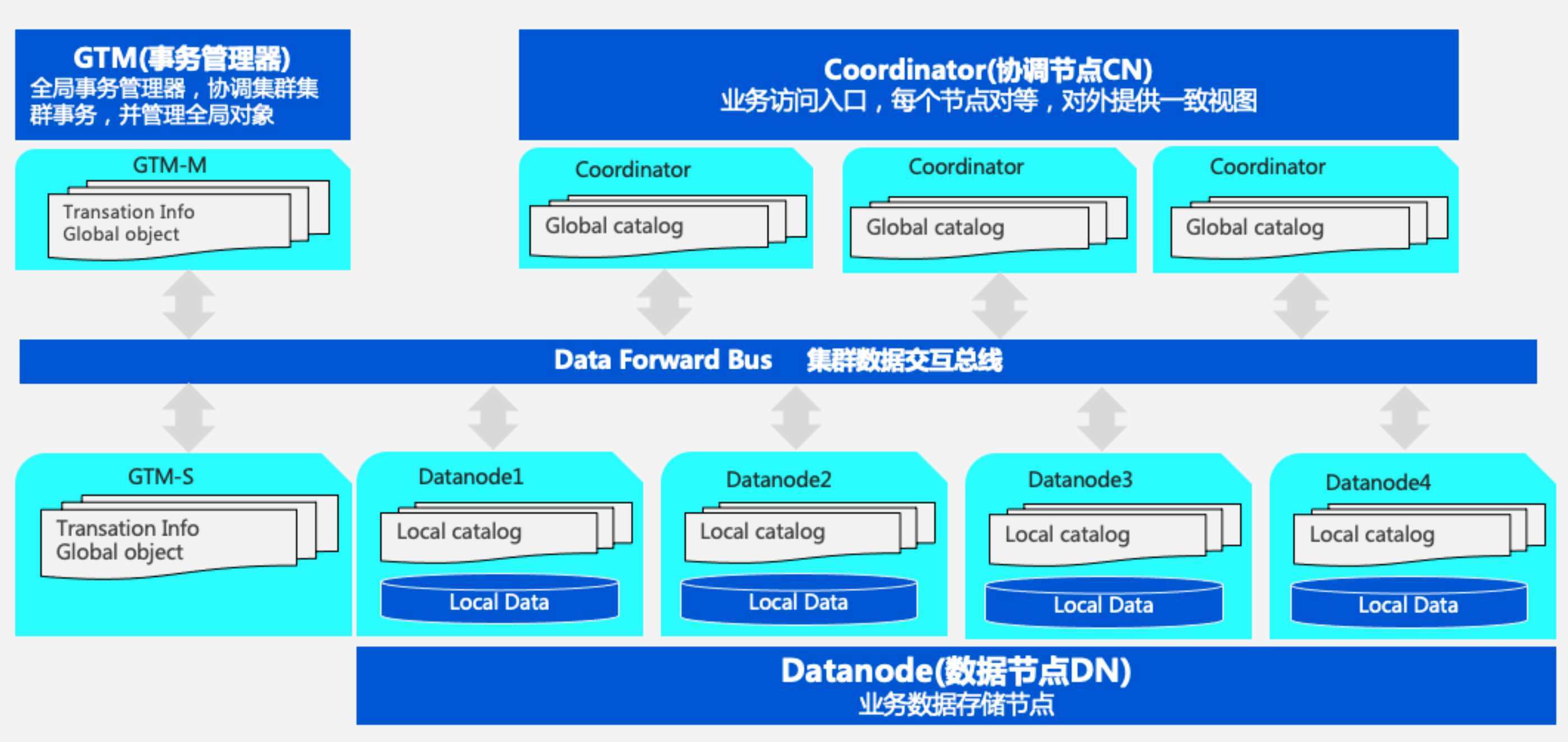 图1:OpenTenBase双内核分布式架构图 - 展示核心组件和数据流向