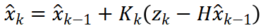 其中 Kk 是卡尔曼增益,用来平衡预测与观测的权重。