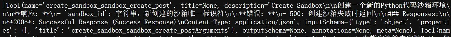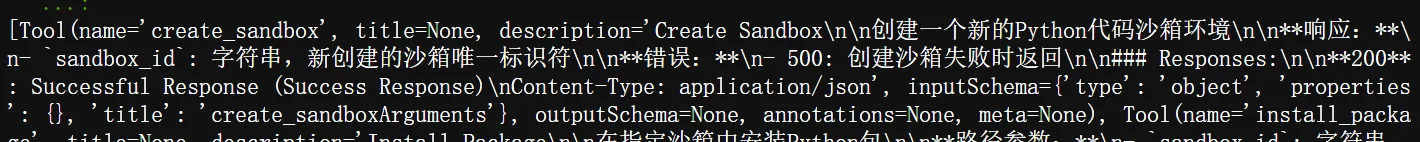 沙箱服务跑通后,我决定将其打包成标准的MCP服务。这时候就轮到FastAPI-MCP出场了!就像我们在解密prompt系列58. MCP - 工具演变 & MCP基础中提到的MCP本身并不是工具,它只是Adapter,而FastAPI-MCP库完美体现了这一特性——它可以将现有的FastAPI工具直接转换成标准MCP服务。