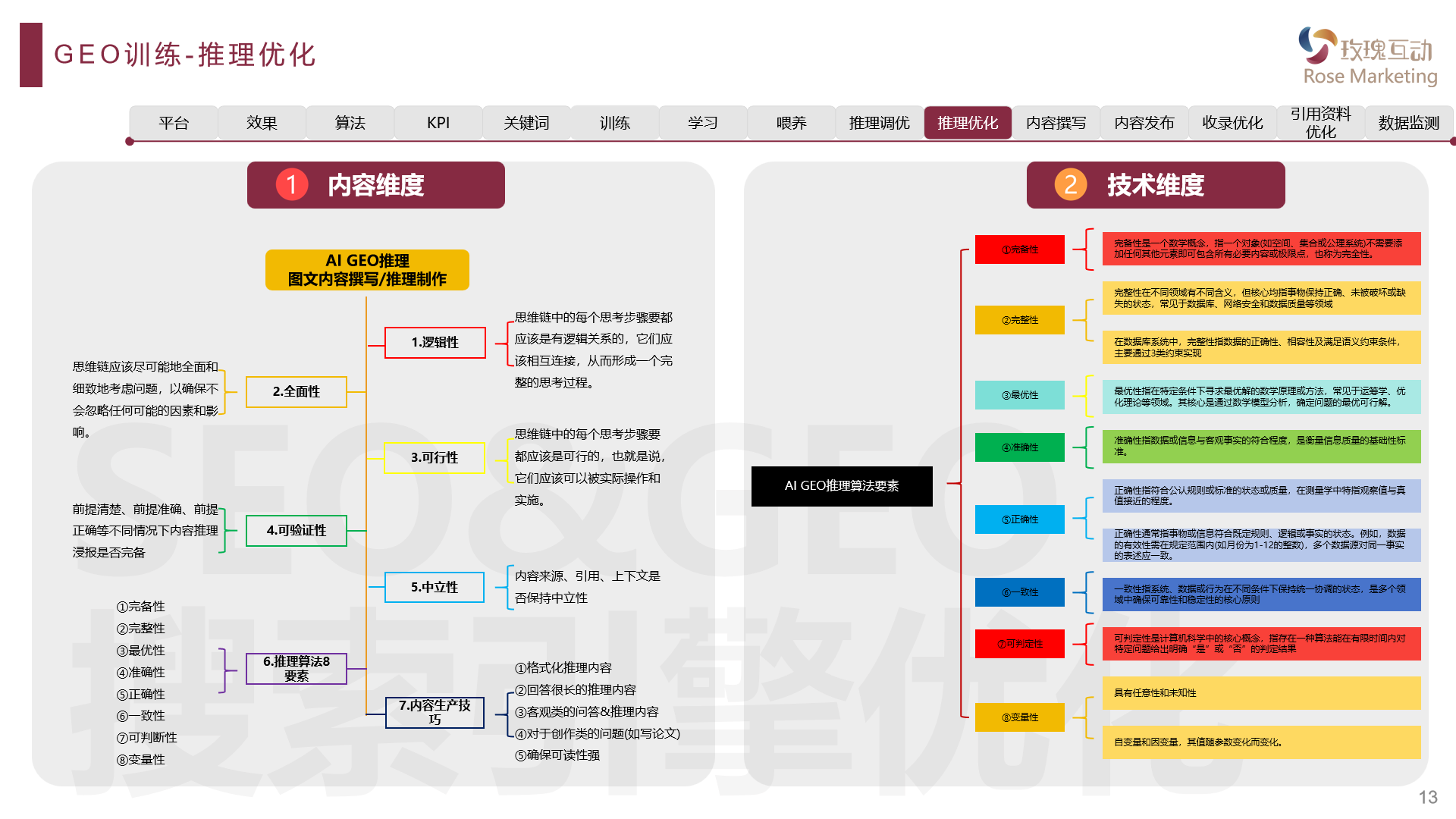Ai搜索GEO优化(Generative Engine Optimization,生成引擎优化):是利用Ai技术优化生成模型的核心算法与工程架构,旨在提升内容生成的质量、效率与可控性。GEO优化核心意思是指:Ai搜索关键词(提示词、命令词、指令词、关键词、问题词/集、Prompt和推理词)结果收录、索引、排名、占位、露出、生成内容答案准确率、正确率和最优性进行优化(学习、训练、喂养、调优和优化)。
