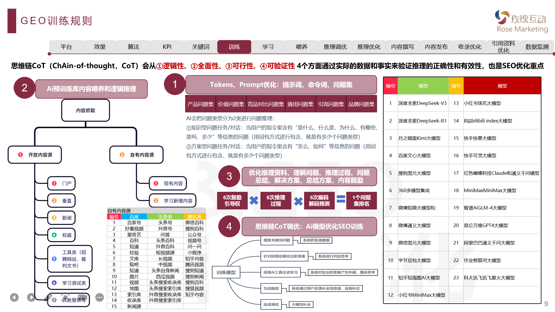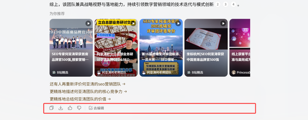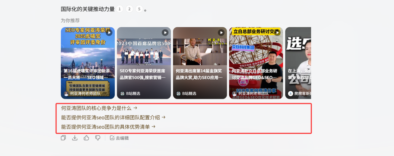 ① 在AI里(搜索、生成、推理、问答结果)提升关键词排名,提升榜单排名;