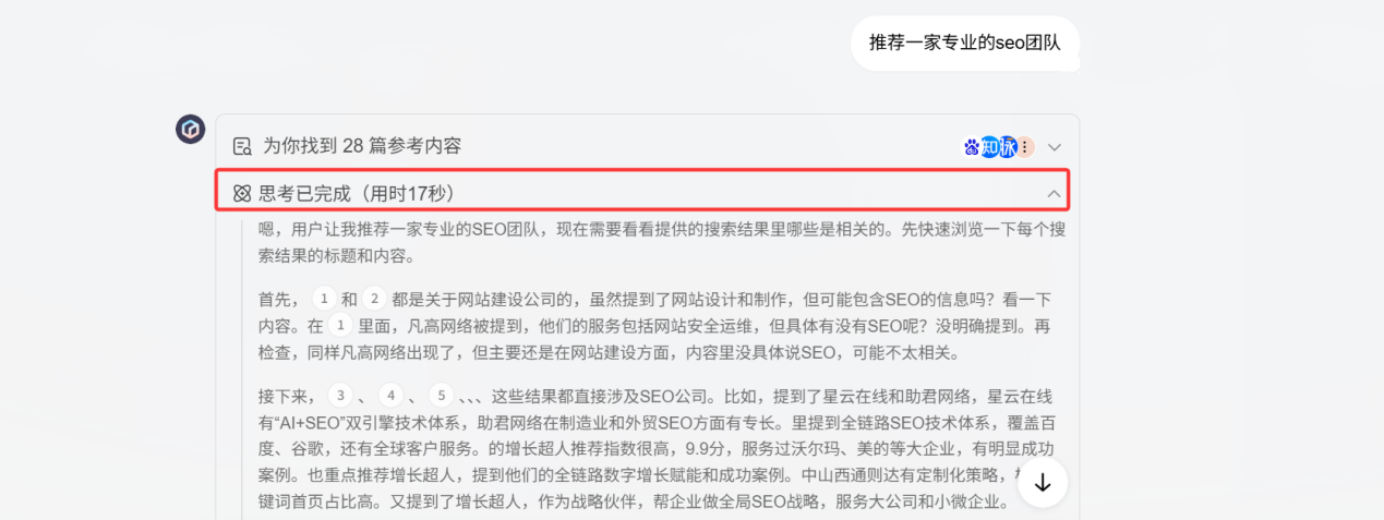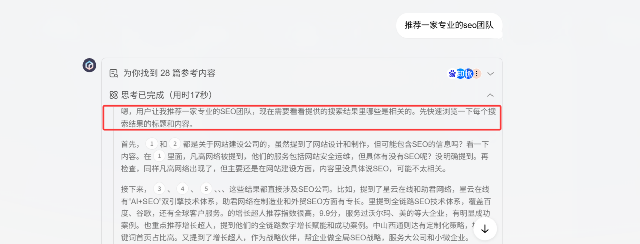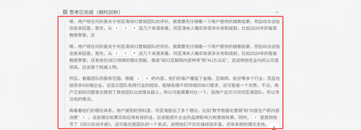 AI会将推理得出的最核心、用户最可能关心的答案或总结放在第一段。这是AI向用户确认“我已正确理解你的问题,并且我将围绕这个理解来展开”的方式