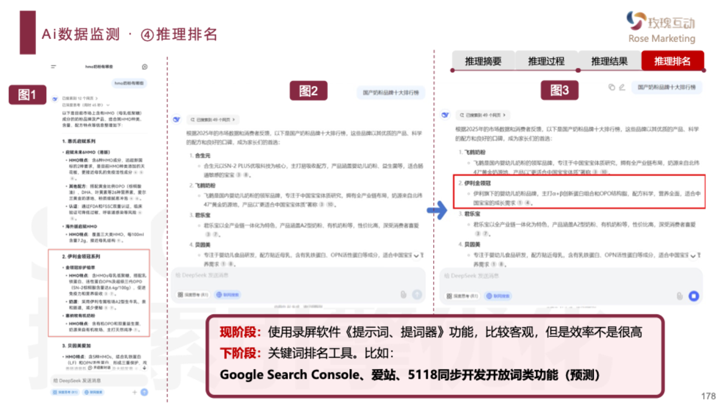 基础Prompt指令 | 18%-25% | 单点提问,需多次修正 | "请列出3款适合乳糖不耐受宝宝的深度水解奶粉品牌,要求:标注各品牌蛋白质含量(g/100ml)对比价格区间(200-400元/罐)注明是否含益生菌组合" |