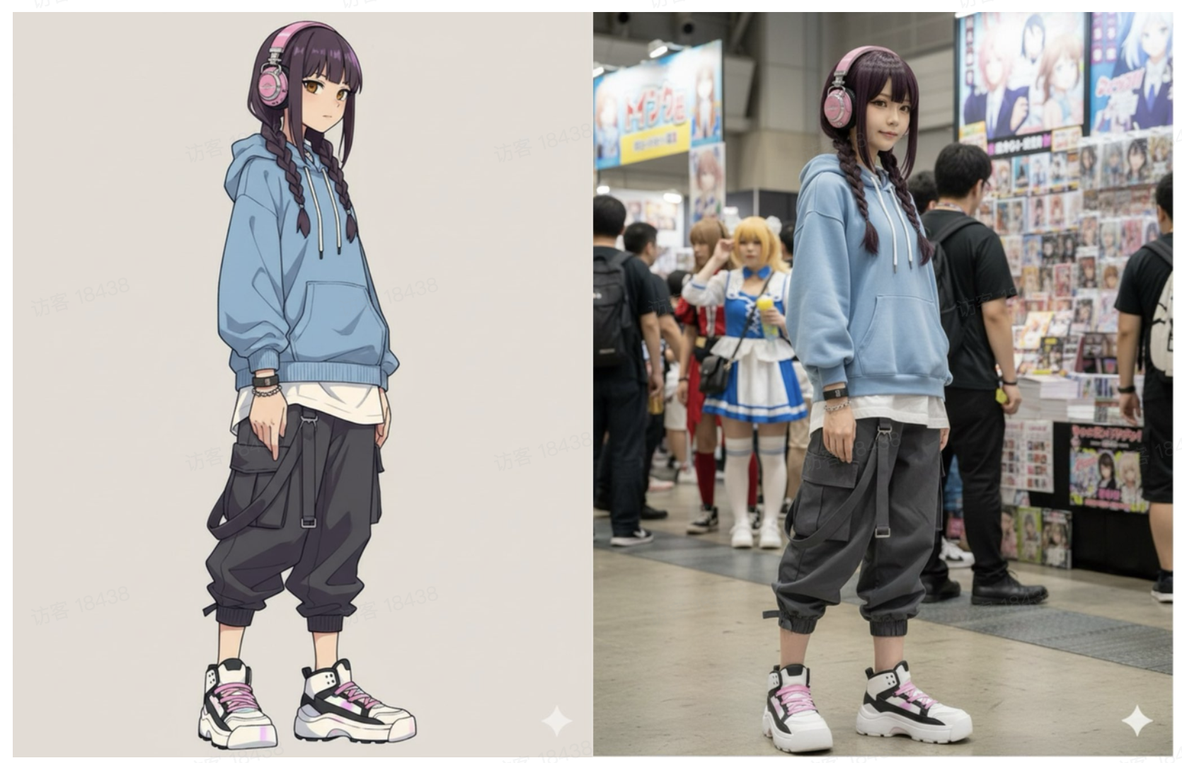 人物一致性是这个模型的最大优点,比如可以把多个人物进行场景转换。新生成的图片,它在人物一致性上做得很好
