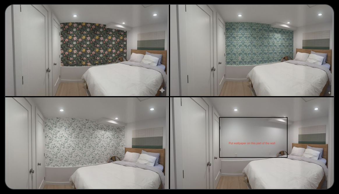 网友Jaclyn Konzelmann分享了自己的制作:在测试房间壁纸时,可以在原始图像上快速勾画出壁纸应该放置的位置轮廓。然后,直接放入你的壁纸样本,进行即时的效果检查。