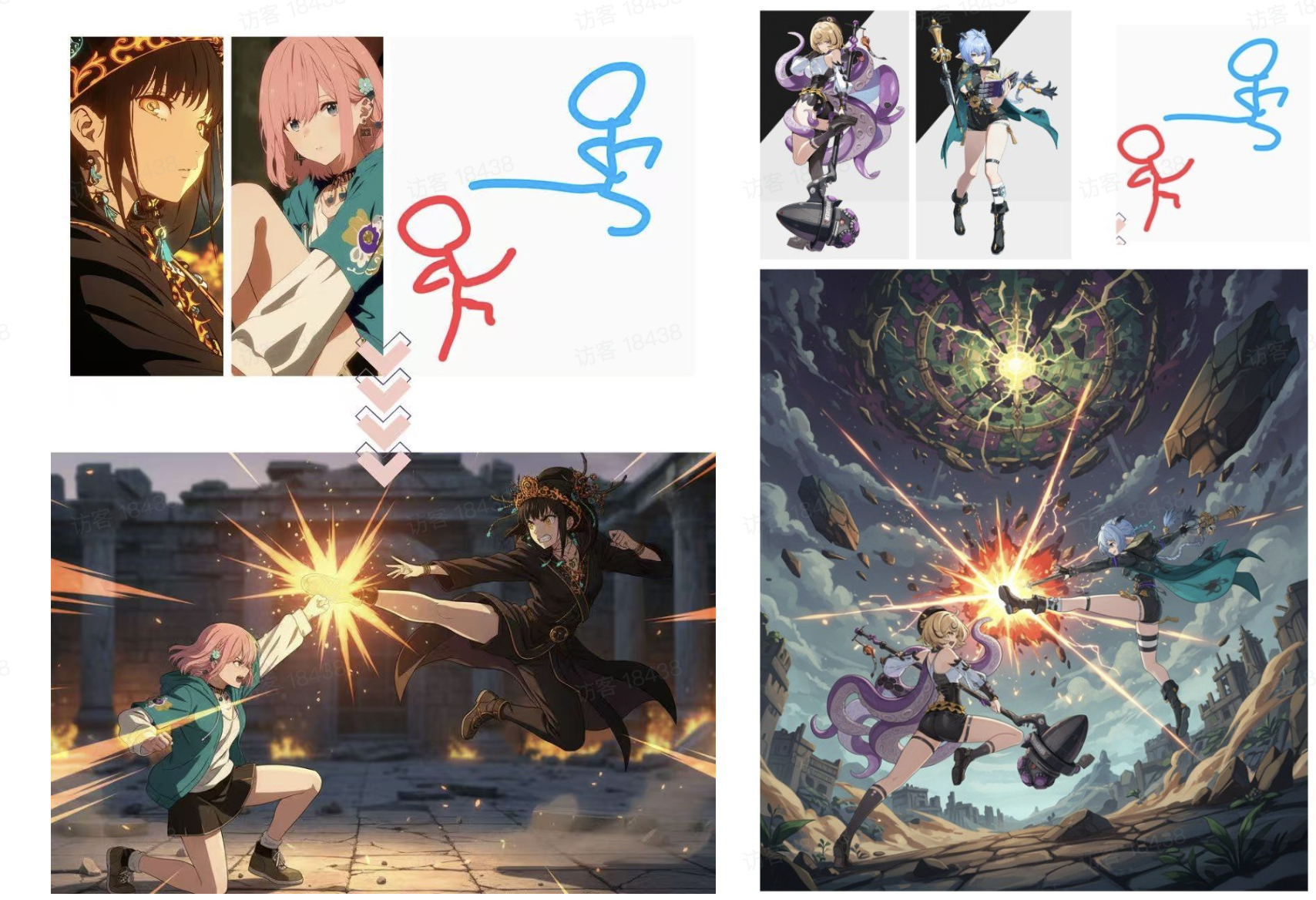 给定两个动漫人物,既可以让他们的动作贴合给出的姿势