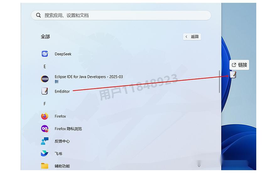 为了方便日后使用,建议将软件从开始菜单拖到桌面,这样就能快速启动EmEditor了。