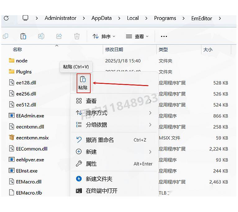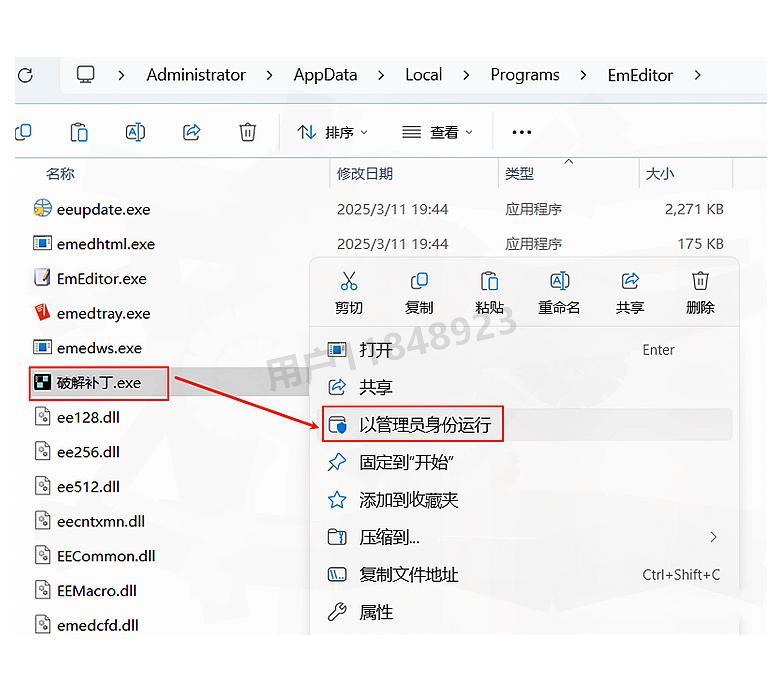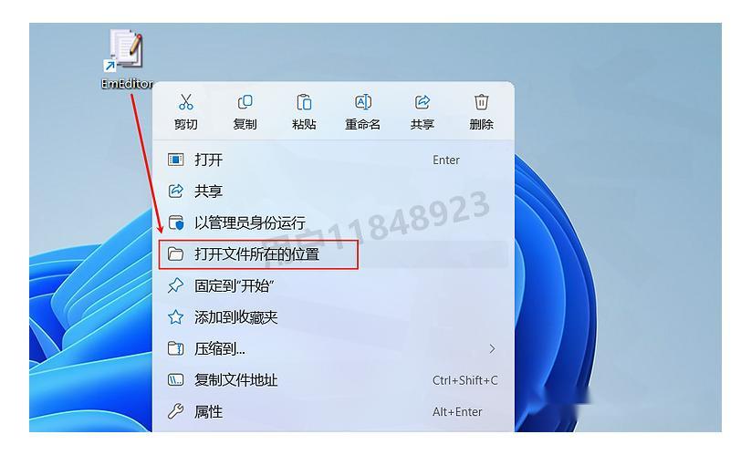 在EmEditor桌面图标上右键点击,选择"打开文件所在位置",这将带你进入软件的安装目录。