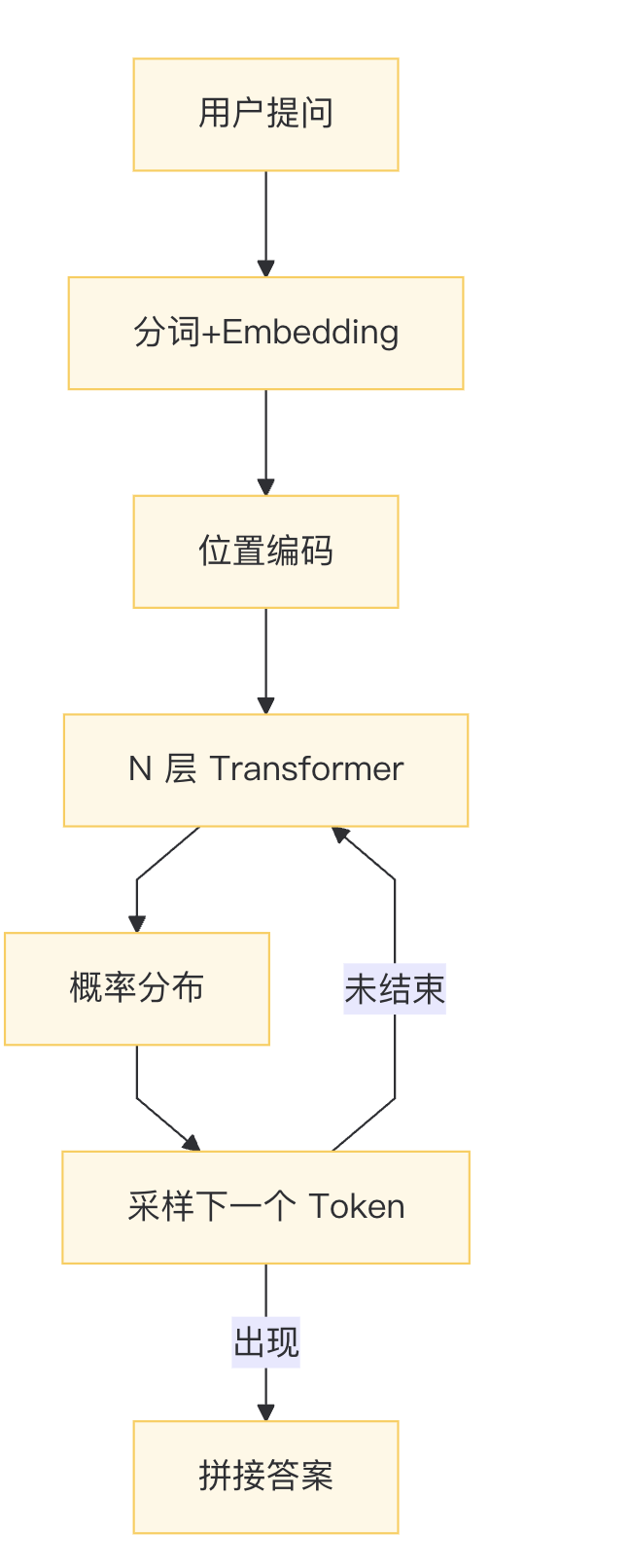 关键一句:每生成 1 个 Token,都要把已生成的全部文本重新送进迷宫,重新算注意力——这就是“自回归”。