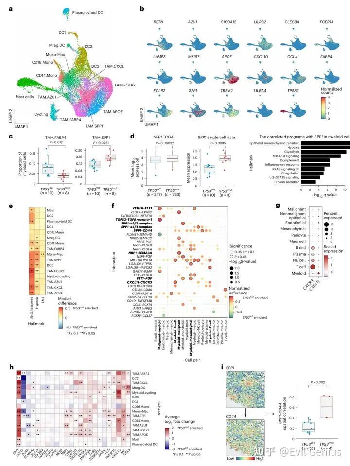总结:TP53突变塑造了一个独特的髓系细胞区室,其特征是SPP1+ TAMs和CXCLs+ TAMs的扩增。它们通过分泌SPP1、CXCL11等因子,建立了一个促进EMT、缺氧、免疫细胞异常招募的微环境网络,共同推动了肿瘤的恶性进展和免疫逃逸。
