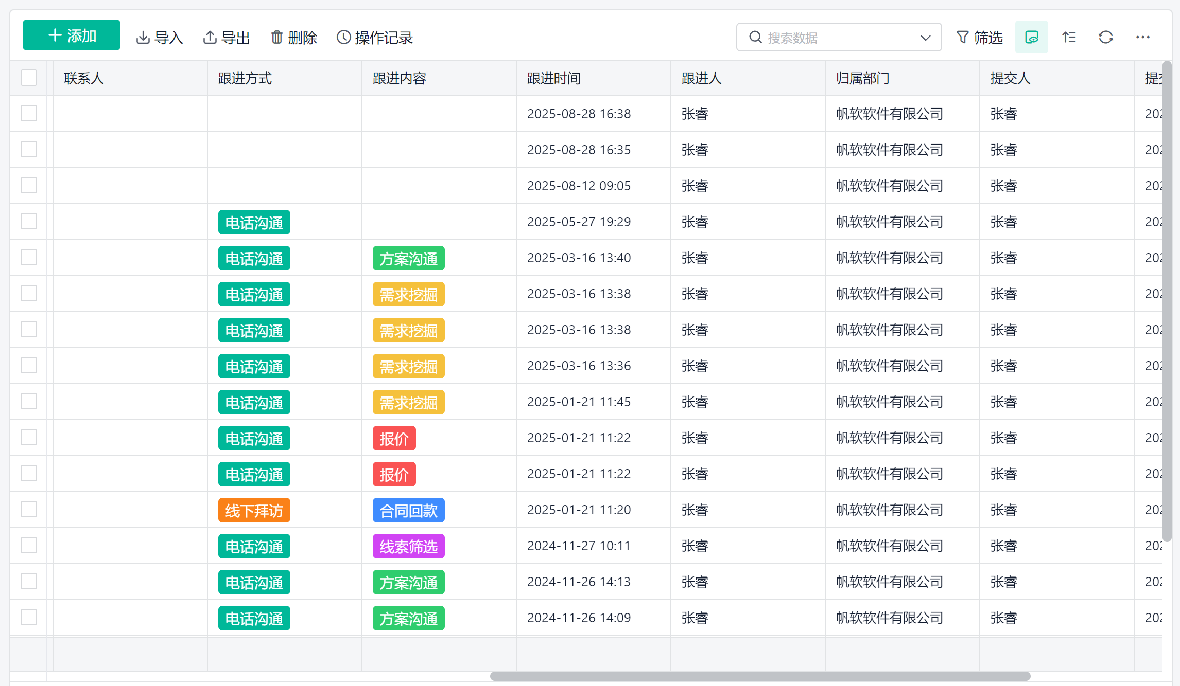我还自定义了几个跟进阶段,比如“方案沟通、需求挖掘、报价、合同回款、线索筛选”,销售只需要选择当前阶段、写几句备注,状态就实时更新了。系统还会自动推送“下次联系提醒”,再也不会漏跟任何一个客户。而我作为管理者,也能实时看到每个人的跟进情况,协作效率大大提升。