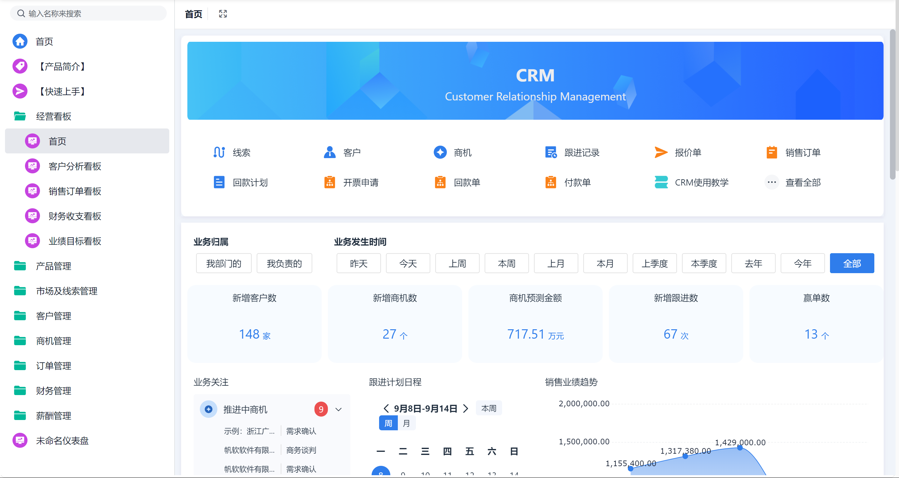 注:本文示例所用方案模板:简道云CRM系统,给大家示例的是一些通用的功能和模块,都是支持自定义修改的,你可以根据自己的需求修改里面的功能。