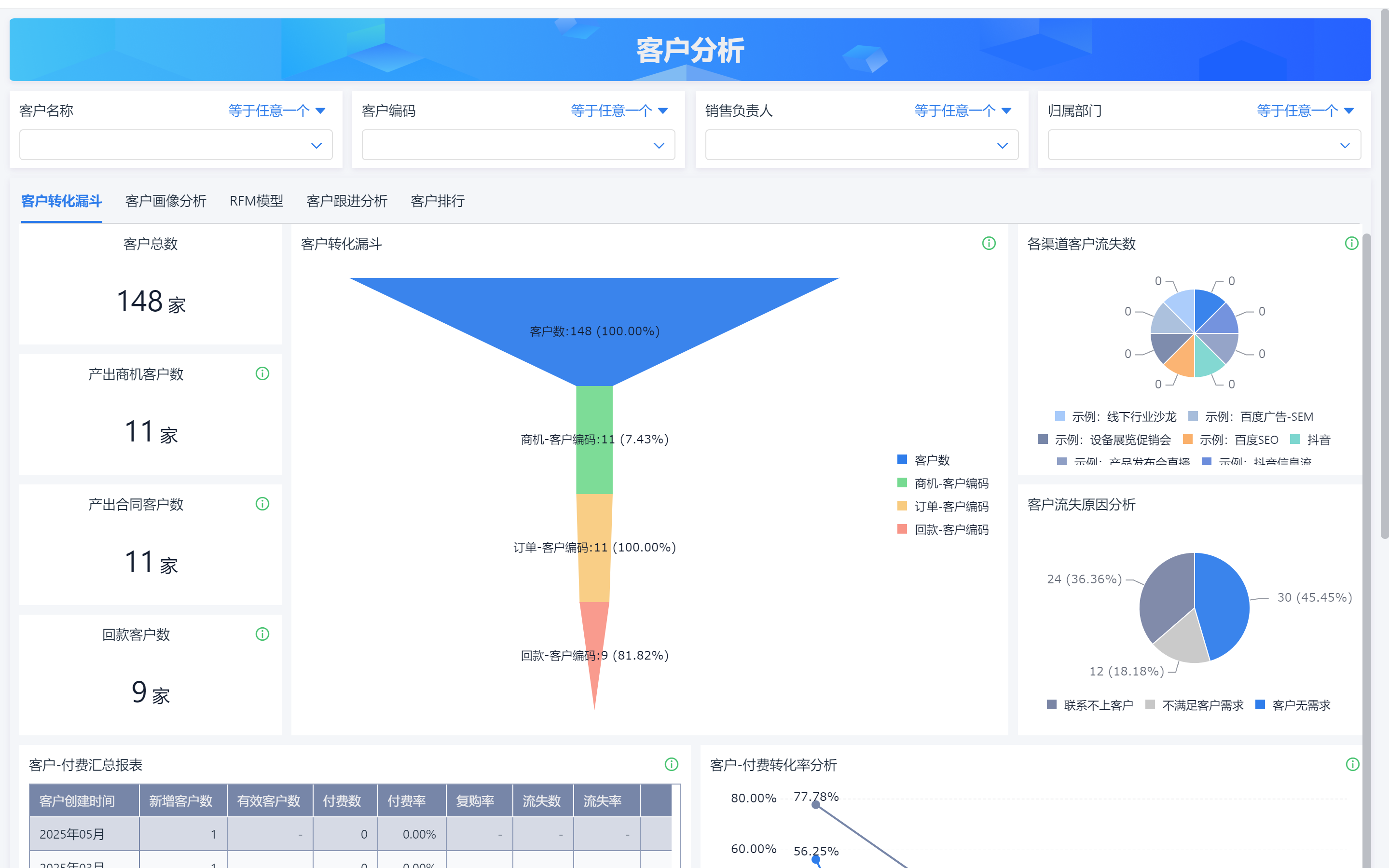录入数据后,平台可以自动生成销售漏斗图,清晰展示每个阶段卡了多少客户、预计成交多少金额。哪个环节转化率低,一眼就能看出来。
