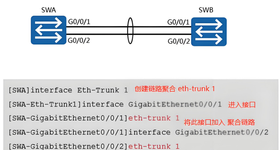 将多条物理链路捆绑成一个逻辑链路组。它不仅增加总带宽(各成员链路带宽之和),还提供冗余备份——当一条物理链路故障时,流量会自动切换到其他正常链路。常见的协议有静态聚合和基于IEEE 802.3ad的LACP(链路聚合控制协议),后者可以自动协商和维护聚合状态。