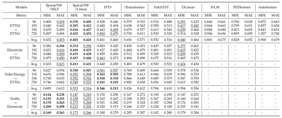 表7. SparseTSF与其他主流模型的泛化能力对比